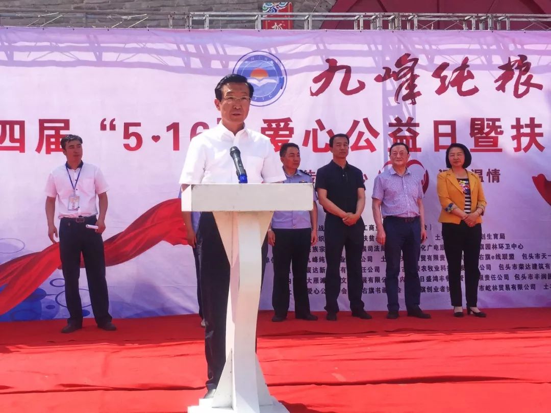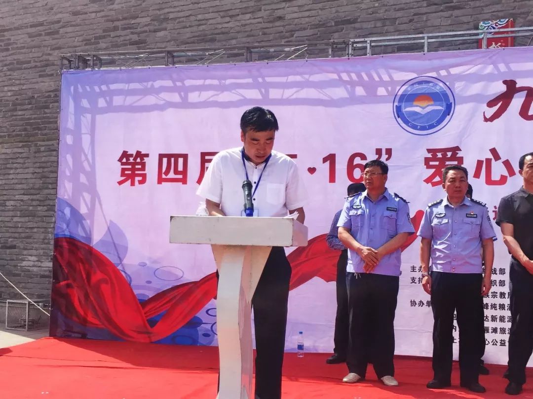 伏俊奎最后宣布“九峰纯粮”第四届“5?16爱心公益日”暨扶贫宣传系列活动正式开始