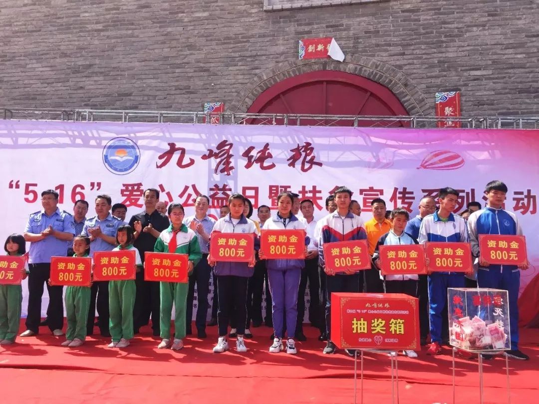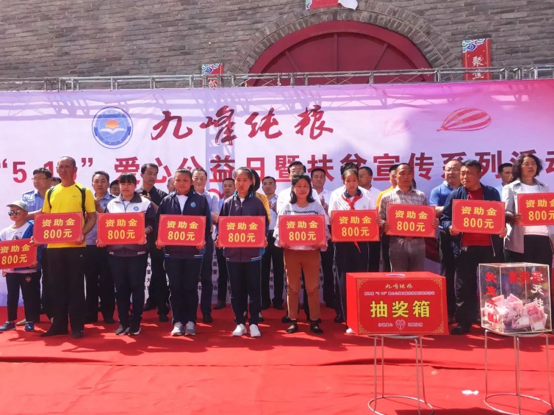 九峰纯粮、嘉华物流、兴达工贸、东鑫能源等企业共同捐资3万余元为40名贫困学生和困难群众发放了资助金。