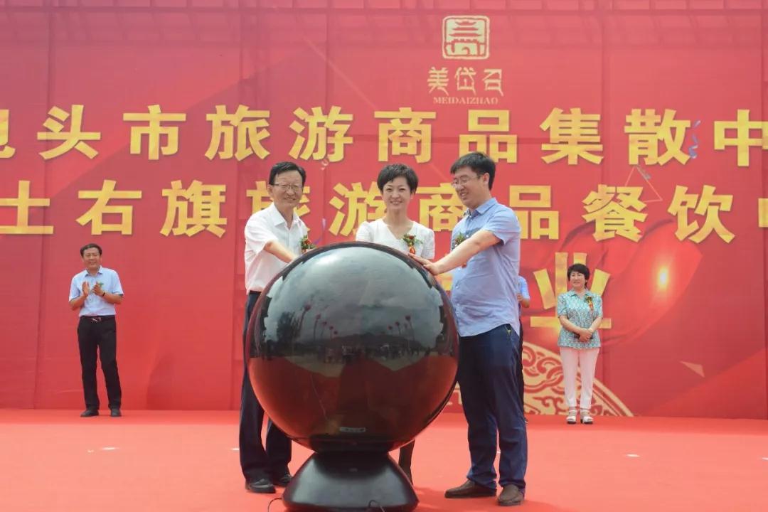 全体领导为包头市旅游商品集散中心和土右旅游商品餐饮中心进行剪彩