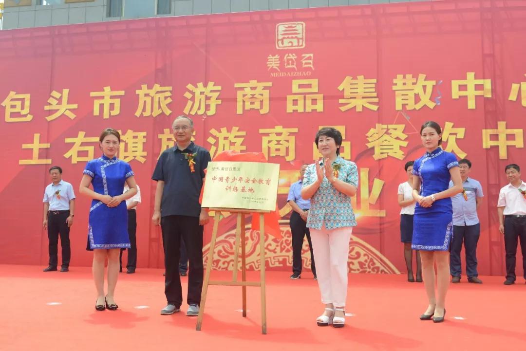旗人大常委会主任张俊义、旗政协主席史灵芝共同为“中国青少年安全教育美岱召训练基地”进行了揭牌
