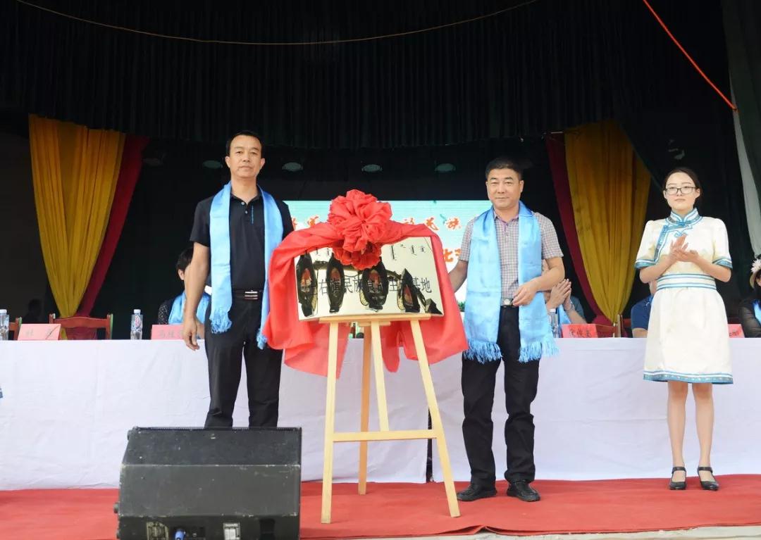 旗委常委、统战部长伏俊奎,旗人大常委会副主任雷海刚为“民族服装加工基地”揭牌
