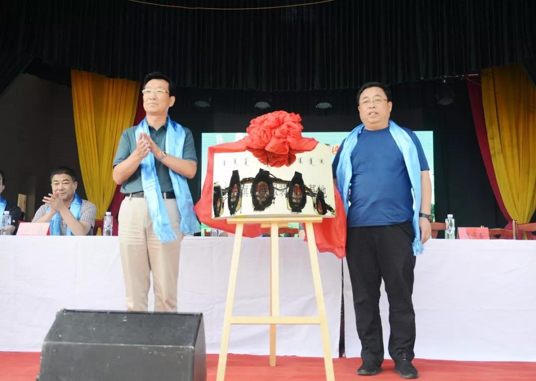 土右旗民族宗教事务局局长孟小杰、土右旗文化广电旅游局局长 杜磊为“民族食品生产基地”揭牌