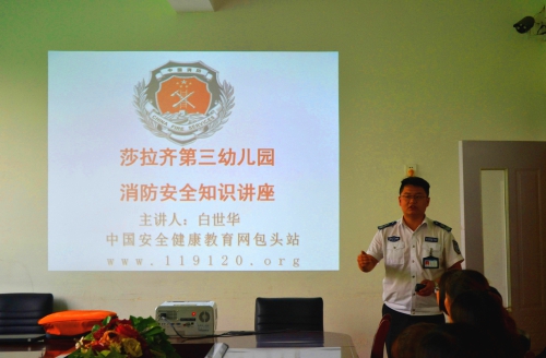 秋冬季节天干物燥,是火灾频发的季节。为进一步加强教职工和家长的消防安全意识,有效提高教师、家长防火灭火及组织幼儿安全逃生的能力,9月21日下午,安全健康教育中心内蒙分中心的教官白世华来到土右旗第三幼儿园,为全园教职工和家委会成员开展了一次别开生面的消防安全培训。